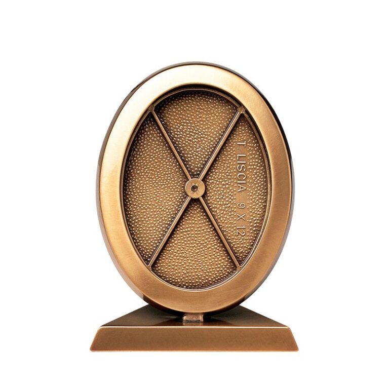 Овальная бронзовая рамка на треугольной подставке для оформления памятника медальоном. Возможно есть несколько фотографий, которые хотелось бы видеть на мемориале. В этом случае один медальон может быть размещён на стеле, а второй рядом с ней.