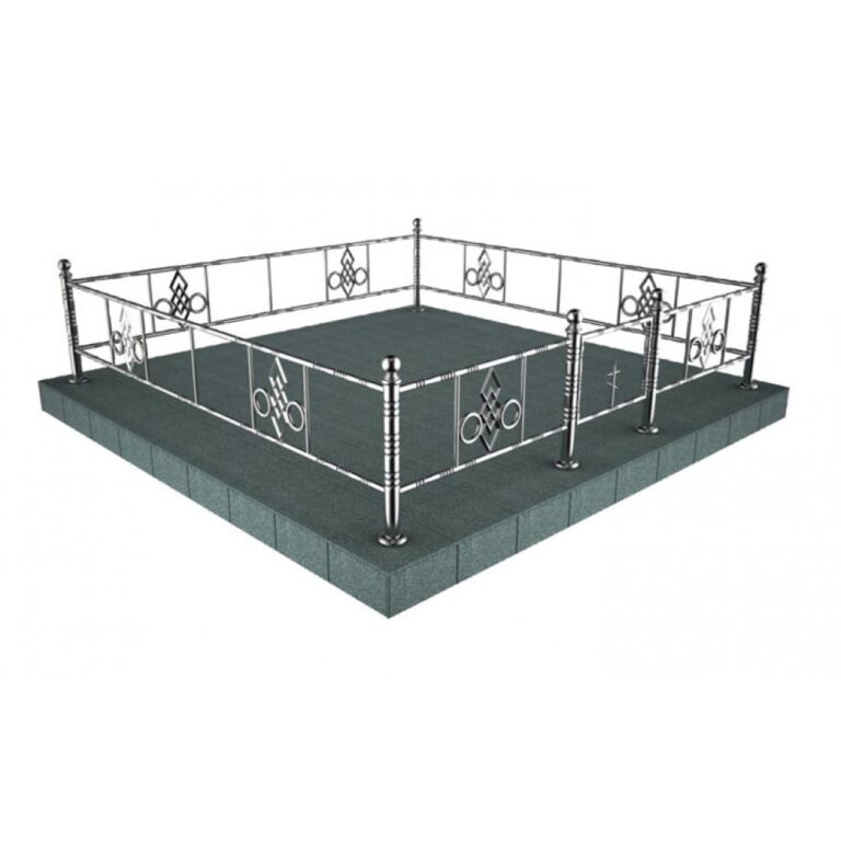 Ограда из нержавеющей стали — практичный способ благоустройства места захоронения. В стоимость ограды входит изготовление калитки, расположение которой согласовывается при заказе.