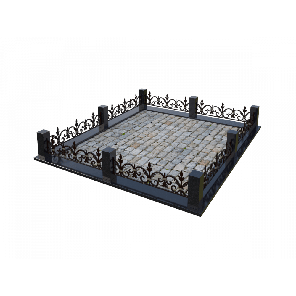 Кованая ограда для высоты гранитного столба 30 см, квадрат металла 12 мм. Стоимость гранитных столбов в цену ковки не входит. Кованая ограда обладает повышенной прочностью и является самостоятельным художественным украшением мемориального комплекса.